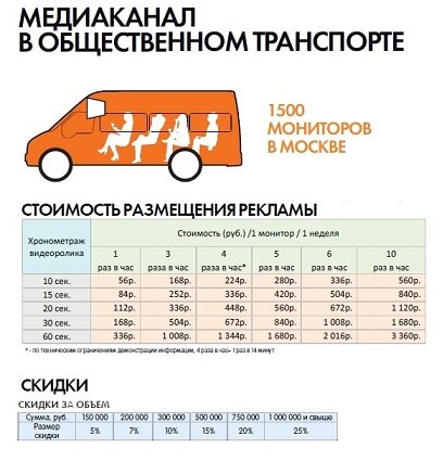 Размещение рекламных роликов на мониторах внутри салона маршруток